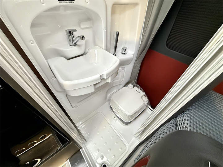 全能配置覆盖全场景需求:48V底置空调与进口燃油暖风热水一体机,搭配驾驶舱原车大功率冷暖空调,实现全天候温度调节;15M食品级外接加水管与电源线、预留太阳能线束,让旅居生活告别资源束缚;半开放式卫生间配备赛特福德便携式坐便器与翻折式面盆,外置淋浴系统满足户外清洁需求;LED前大灯、日间行车灯与中门长条形户外灯保障夜间出行安全,亮黑色REV定制铝轮毂与车身彩贴则为外观增添时尚气息。