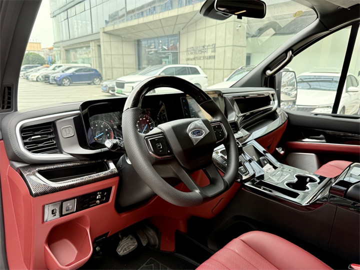 豪华质感渗透于每一处细节,E0级环保标准房车家具搭配商务车专用哑光黑金花石纹岩板,乘用车级环保软质商务内饰辅以中国红印记内饰风格,既保证健康环保,又彰显格调。驾驶舱3.5寸液晶仪表与8寸中控显示屏形成智能交互矩阵,蓝牙功放与专业喇叭构建立体影音系统;主副驾驶后背翻折桌板、折叠餐桌与102L双开门房车专用冰箱、800W电磁炉组成实用厨房区,美标食品级水路系统搭配75L净水箱与40L灰水箱,满足饮食起居所需。全车免焊接强化支架与高强度硼钢车身筑牢安全防线,主副驾驶安全气囊、倒车雷达+倒车影像、胎压监测、电子手刹、自动驻车等配置一应俱全,CO/烟雾报警器、灭火器与防盗报警系统,为出行保驾护航。